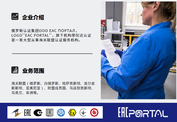 浙江荣仪达认证是专注于俄罗斯及欧亚经济联盟认证的专业服务机构,深耕行业多年,熟稔俄联邦及欧亚联盟最新认证法规与实操流程,核心为企业提供EAC、GOST等核心认证及各类特殊资质办理服务。凭借本土化的技术支持和全流程的服务体系,我们能为您精准匹配认证方案、缩短认证周期、规避合规风险,让产品高效、合规进入俄罗斯及欧亚各国市场,是企业出海俄欧亚市场的可靠认证合作伙伴。